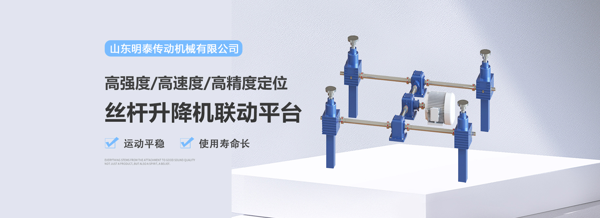 山東明泰傳動機械有限公司擁有完善的生產(chǎn)設(shè)備和檢測設(shè)備,本公司生產(chǎn)的絲桿升降機、螺旋絲桿升降機、滾珠絲桿升降機、蝸輪絲桿升降機、蝸輪蝸桿減速機、四大系列減速機等產(chǎn)品結(jié)構(gòu)合理、性能優(yōu)越,廣泛用于冶金、礦山、起重運輸、石油、化工、紡織、食品、輕工業(yè)等行業(yè)。我公司所有產(chǎn)品出廠前都經(jīng)過調(diào)試和嚴格的質(zhì)檢,機身外觀干凈整潔大方,內(nèi)部機械結(jié)構(gòu)緊湊,熱交換性能好,經(jīng)久耐用,配套形式多樣化,亦可根據(jù)客戶需求承接非標機械的設(shè)計與制造,深受用戶好評。獨到的經(jīng)營理念是占領(lǐng)市場的制勝法寶。公司將以“品質(zhì)的產(chǎn)品,完善的服務(wù),至高的信譽“服務(wù)客戶... 【了解更多】